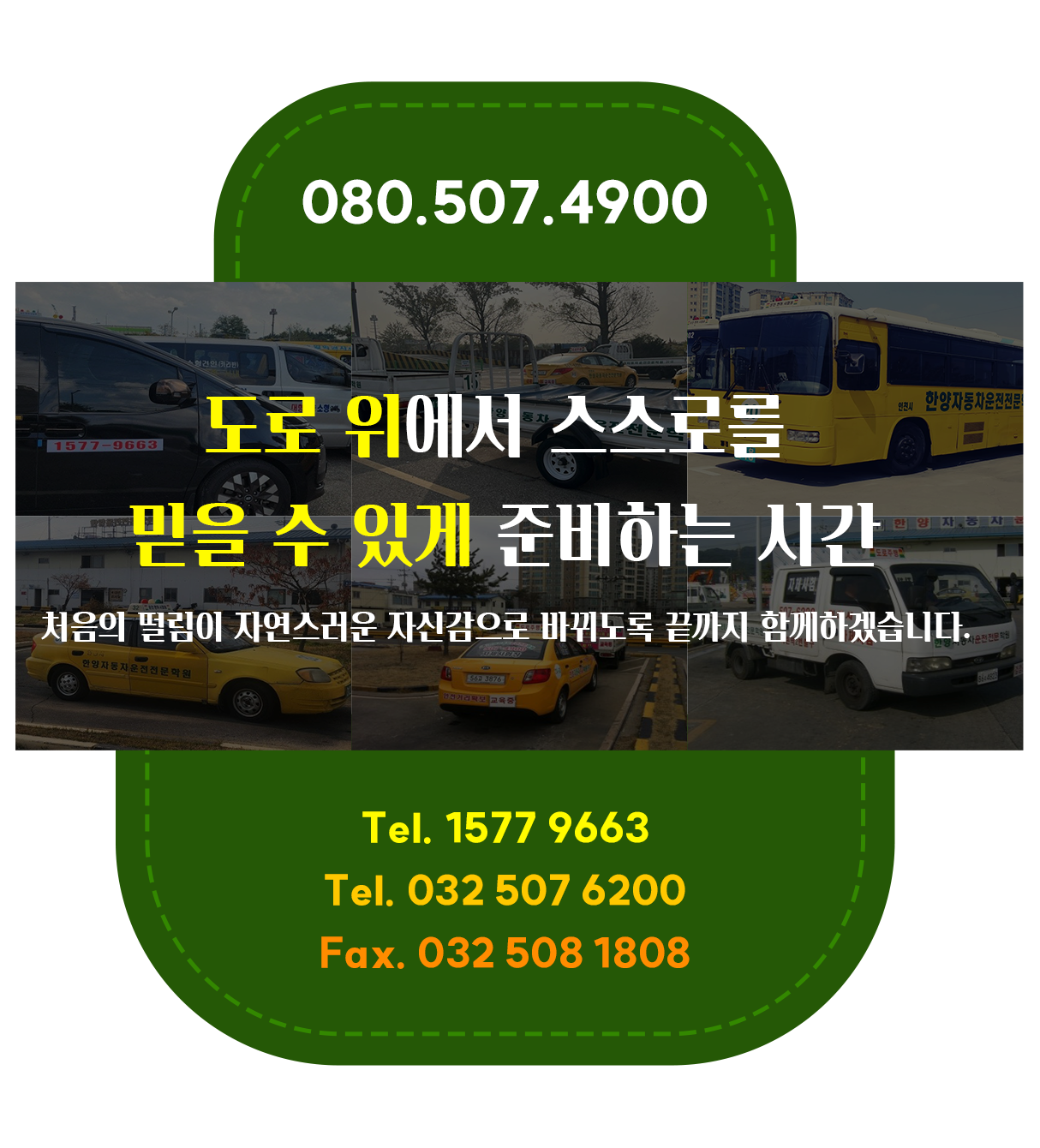 한양자동차운전전문학원은 학원을 찾는 모든 분에게 부담을 줄이고 편안함을 더하는 데 마음을 기울입니다. 무료 셔틀로 편히 오갈 수 있도록 돕고, 주부와 직장인을 위한 특별반, 휴게 공간과 놀이방, 최신식 차량까지 세심하게 갖추어 학습 과정이 매끄럽게 이어지도록 구성했습니다. 단순히 빠른 취득을 목표로 하기보다, 도로 위에서 스스로를 믿을 수 있는 안정된 감각을 길러 드리는 것이 이곳의 바람입니다. 처음의 떨림이 자연스러운 자신감으로 바뀌는 순간까지 한양자동차운전전문학원이 함께하겠습니다.